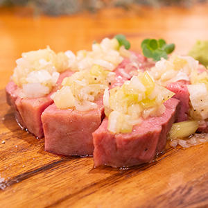 真空低温調理をした牛タンはしっとりと柔らかく、本来の旨みが凝縮されています。 他では出会えない味わいを存分とお楽しみください。