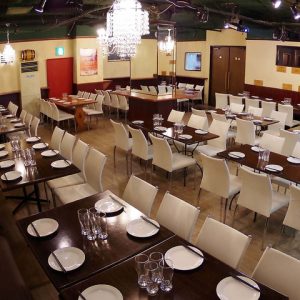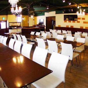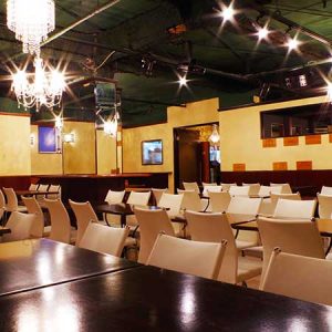 PAUSAVI(パウサビ)で一番大きな会場は、120名様まで着席可能。シャンデリアが煌めくラグジュアリーな空間は、企業様のレセプションや同窓会、ウエディング二次会など大切なパーティーにもおすすめです。マイクやプロジェクターを完備しています。